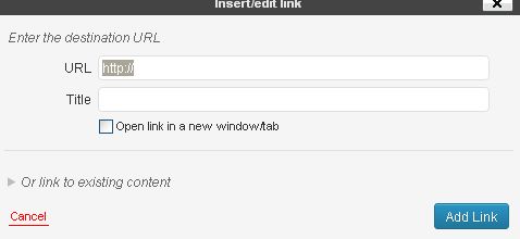 A pop up appears where you write in the website or web page address. Make sure you keep the http:// part on the address.