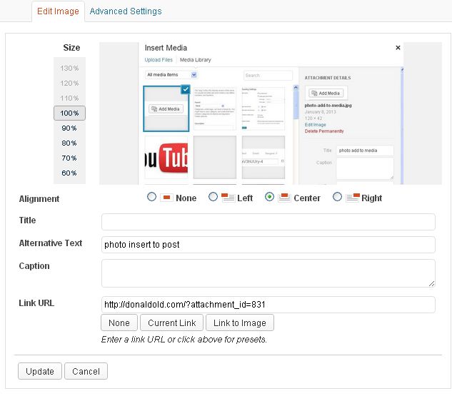 You can adjust the size down and change the position of the photo here. When you are finished, hit the update button.
