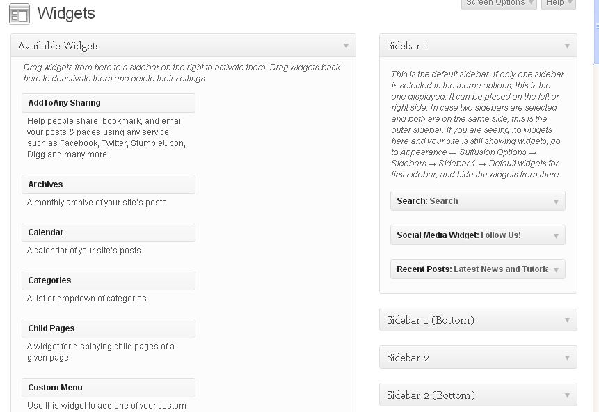 If you want to move a widget into your sidebar, you just click down the sidebar you wish to use and drag and drop the desired widget to the sidebar.